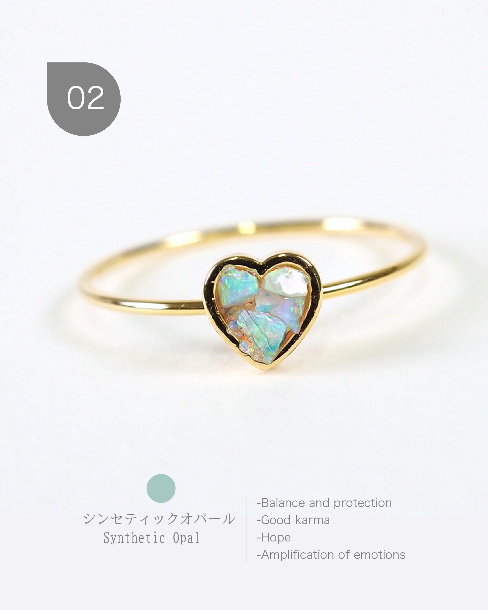 "MUK Dreamy Stone" is a charm accessory series that embodies the good fortune of natural stones. This ring features a heart-shaped design with crushed natural stones tightly embedded inside. The gentle colors of the natural stones and the small heart motif are framed with metal, making it not too sweet, making it a recommended item for adults who want to enjoy a subtle heart motif.