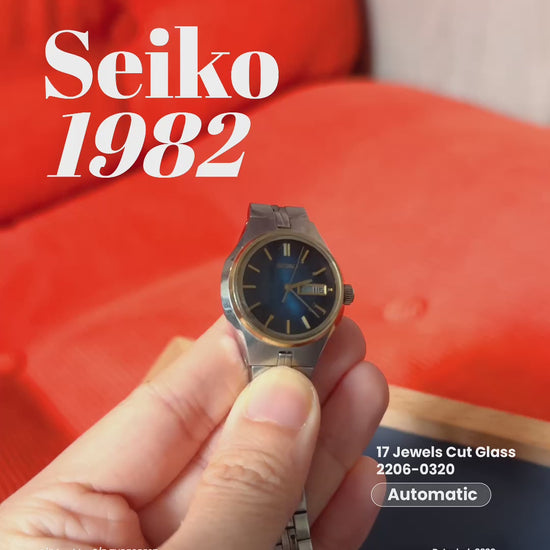 Vintage Seiko automatic Blue Dial cut glass 17 Jewels Cut Glass 2206-0320
